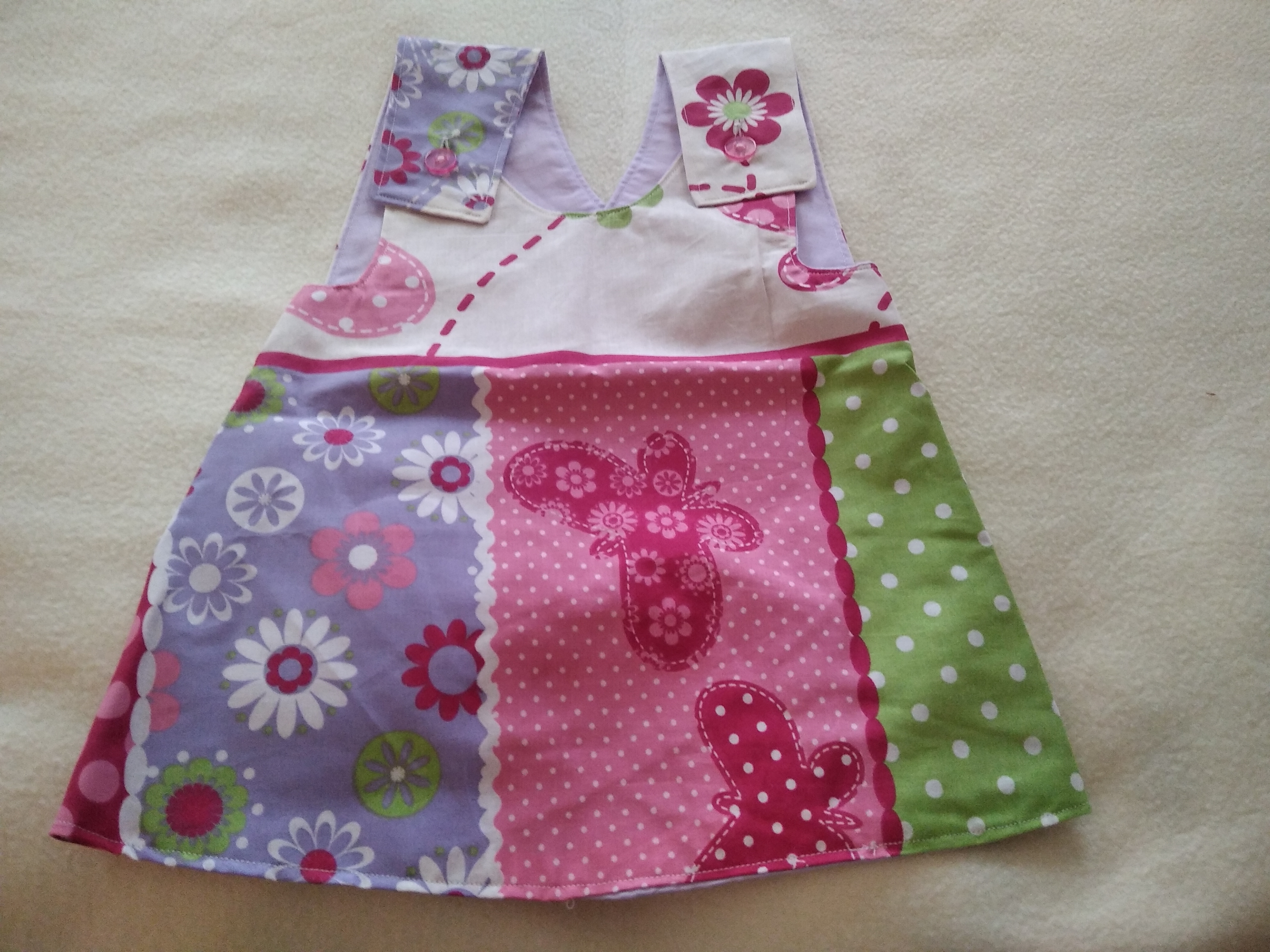 Luftiges Schürzenkleid. Die Träger werden auf dem Rücken über Kreuz getragen. Das Kleid ist somit hinten offen, aber Blickdicht.